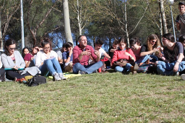 Ángel Martínez con los estudiantes de CC de la Información. Foto: Amaia Echevarría. La Tertulia Infinita (cc by)