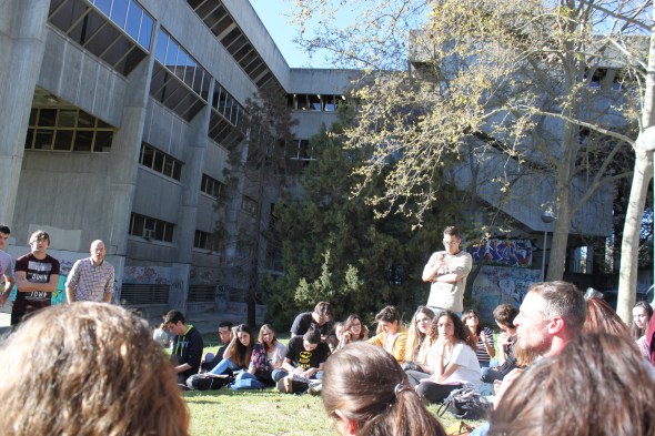 El día 5 de abril de 2017 los alumnos de Ciencias Políticas y Relaciones Internacionales se reunieron en el césped de la Facultad de Ciencias de la Información (UCM) para tener un debate con el jefe de la Sección de Internacional de El Confidencial, Ángel Martínez (@angelmartgar, Ferrol, 1977). La moderadora, Gracia Luisa Espinosa-Arroquia (@GraciaLuisa92), empezó preguntándole por la formación recibida para hacer su trabajo y la recomendación de ser autodidactas terminó recorriendo toda la charla.